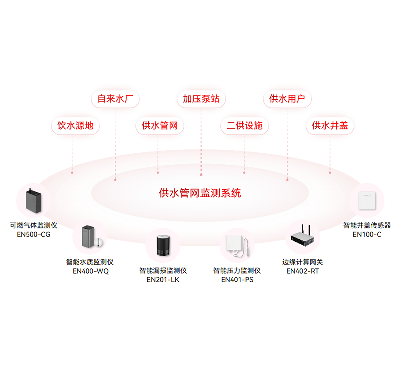 對供水管網(wǎng)設(shè)施及水質(zhì)提供實時監(jiān)測,通過各類智能監(jiān)測終端保障供水壓力平衡、流量穩(wěn)定和供水安全,及時發(fā)現(xiàn)爆管并預(yù)警,避免大面積城市停水事故發(fā)生,為管網(wǎng)爆管預(yù)警分析、用水趨勢分析和泄漏量預(yù)警分析提供數(shù)據(jù)支撐。