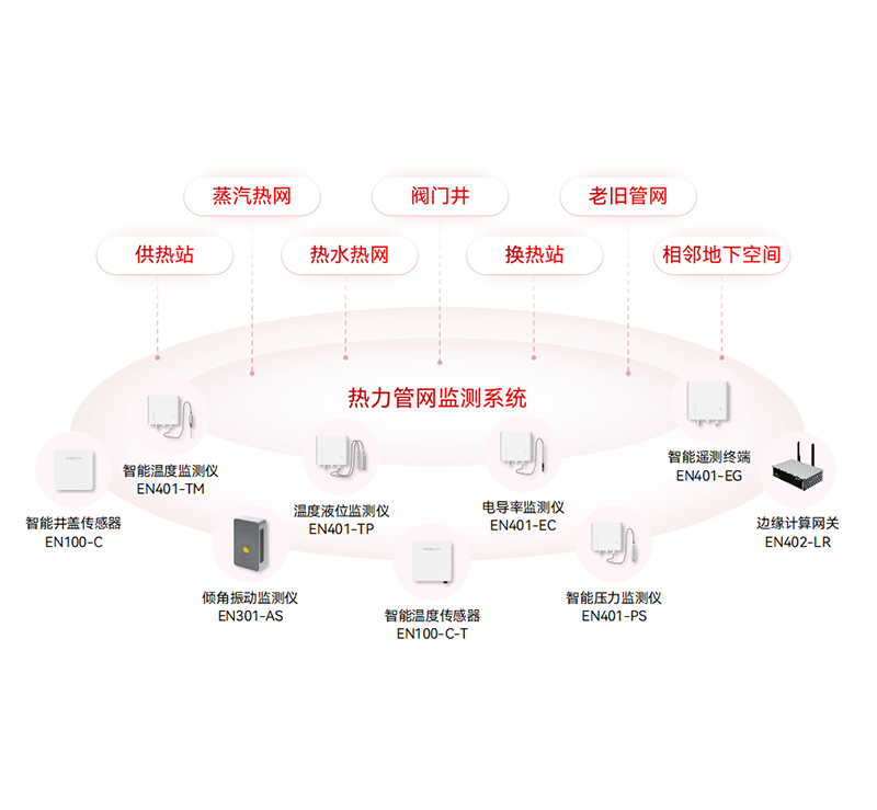 對供熱管網(wǎng)的蒸汽管道排潮孔溫度、疏水箱壓力,熱水管網(wǎng)土壤溫度,管網(wǎng)流量、壓力,井蓋異動等指標(biāo)進(jìn)行實時監(jiān)測,構(gòu)建供熱管網(wǎng)綜合管理的動態(tài)監(jiān)測網(wǎng)絡(luò),保證整個城市供熱穩(wěn)定安全運行。
