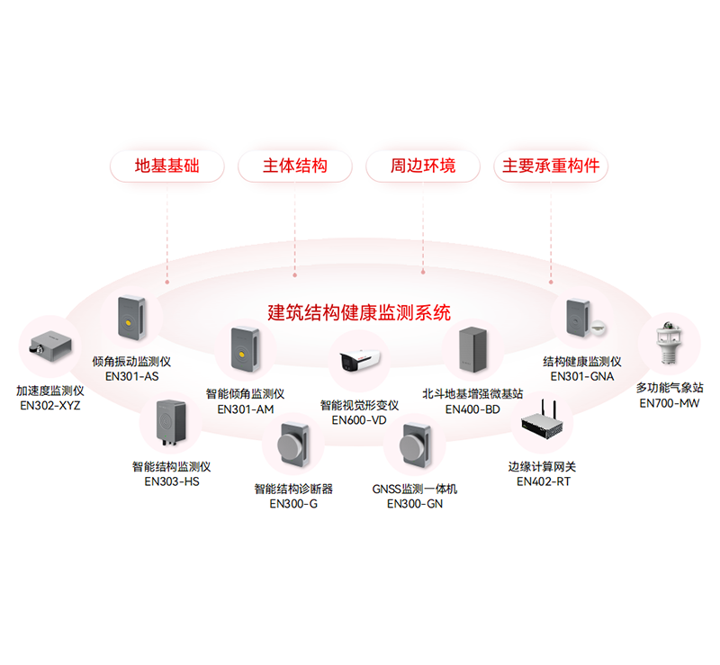 實時監(jiān)控建筑結(jié)構(gòu)健康狀態(tài),通過位移、沉降、傾斜、溫濕度、裂縫和動態(tài)平衡、自振頻率的數(shù)據(jù)收集分析,對潛在災(zāi)害進(jìn)行提前預(yù)警,對突發(fā)事件應(yīng)急報警,為結(jié)構(gòu)坍塌監(jiān)測預(yù)警分析和滑坡監(jiān)測預(yù)警分析提供數(shù)據(jù)支撐,實現(xiàn)對建筑健康狀態(tài)的實時評估。
